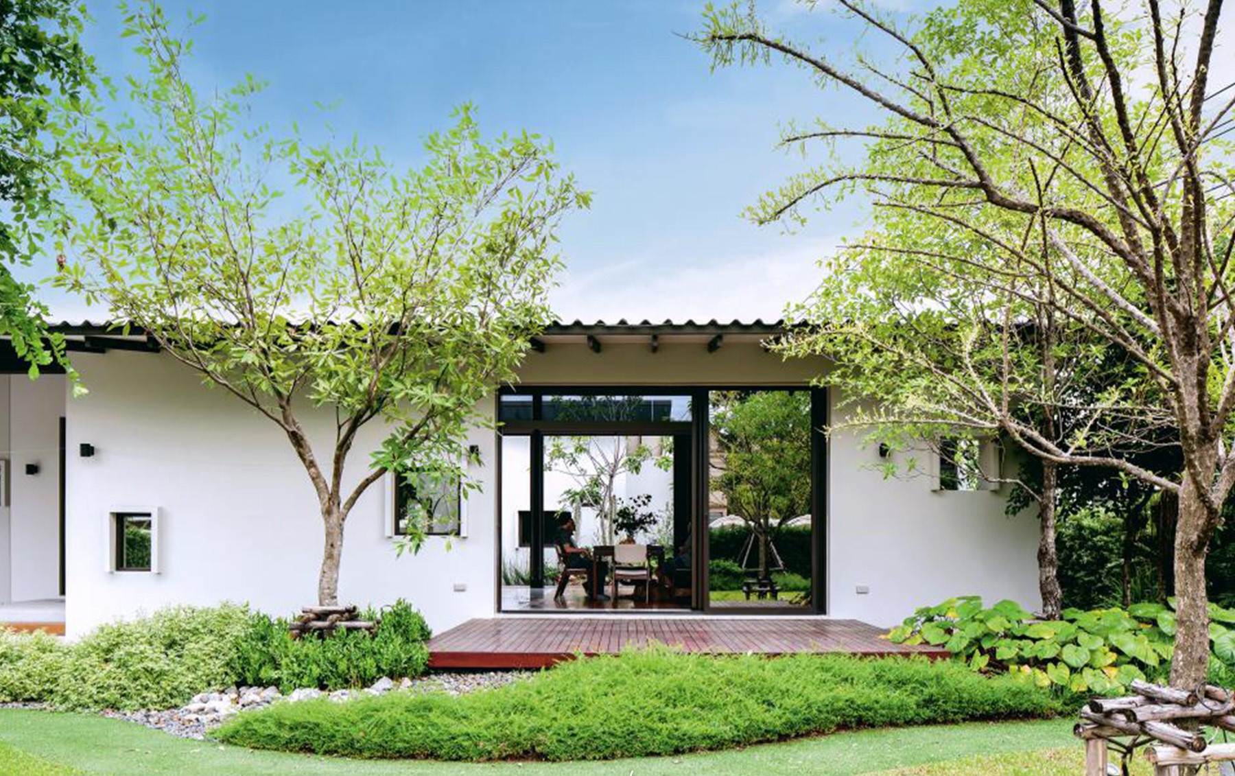 Hiện nay mái Nhật ở nhà cấp 4 có hai dạng chính: mái ngói dốc và mái ngói phẳng. Dù khác nhau về hình thức, cả hai đều đề cao chi tiết tối giản. Hệ cửa kính xuyên suốt và mái nâng cao khoảng 4 mét giúp không gian trong nhà thông thoáng và sáng sủa.
