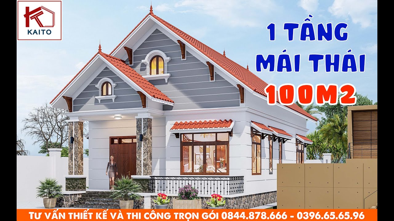Nhà mái Thái 1 tầng diện tích 100m2 rất thu hút với lối thiết kế tân thời, các chi tiết mới lạ và phần mái dốc vừa phải mang phong cách hiện đại. Màu sơn như xanh nhạt thường làm nổi bật mặt tiền, tạo cảm giác thanh lịch nhưng vẫn ấm cúng, dễ gây thiện cảm ngay từ lần gặp đầu.